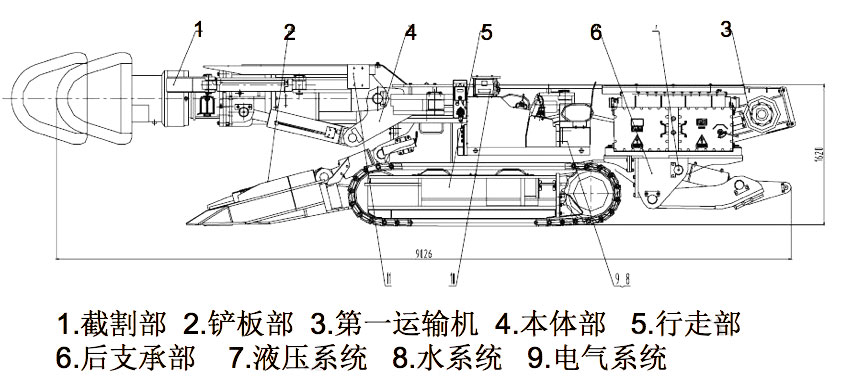 懸臂式掘進機是一種能夠?qū)崿F(xiàn)截割、裝載運輸、自行走及噴霧除塵的聯(lián)合機組。隨著回采工作面綜合采煤機械化的快速發(fā)展,煤礦對巷道掘進速度要求越來越高。為了提高采準巷道的速度,懸臂式掘進機被大力研制并逐步發(fā)展完善。懸臂式掘進機要同時實現(xiàn)剝離煤巖、裝載運出、機器本身的行走調(diào)動以及噴霧除塵等功能,即集切割、裝載、運輸、行走于一身。它主要由切割機構(gòu)、裝載機構(gòu)、運輸機構(gòu)、行走機構(gòu)、機架及回轉(zhuǎn)臺、液壓系統(tǒng)、電氣系統(tǒng)、冷卻滅塵供水系統(tǒng)以及操作控制系統(tǒng)等組成。
